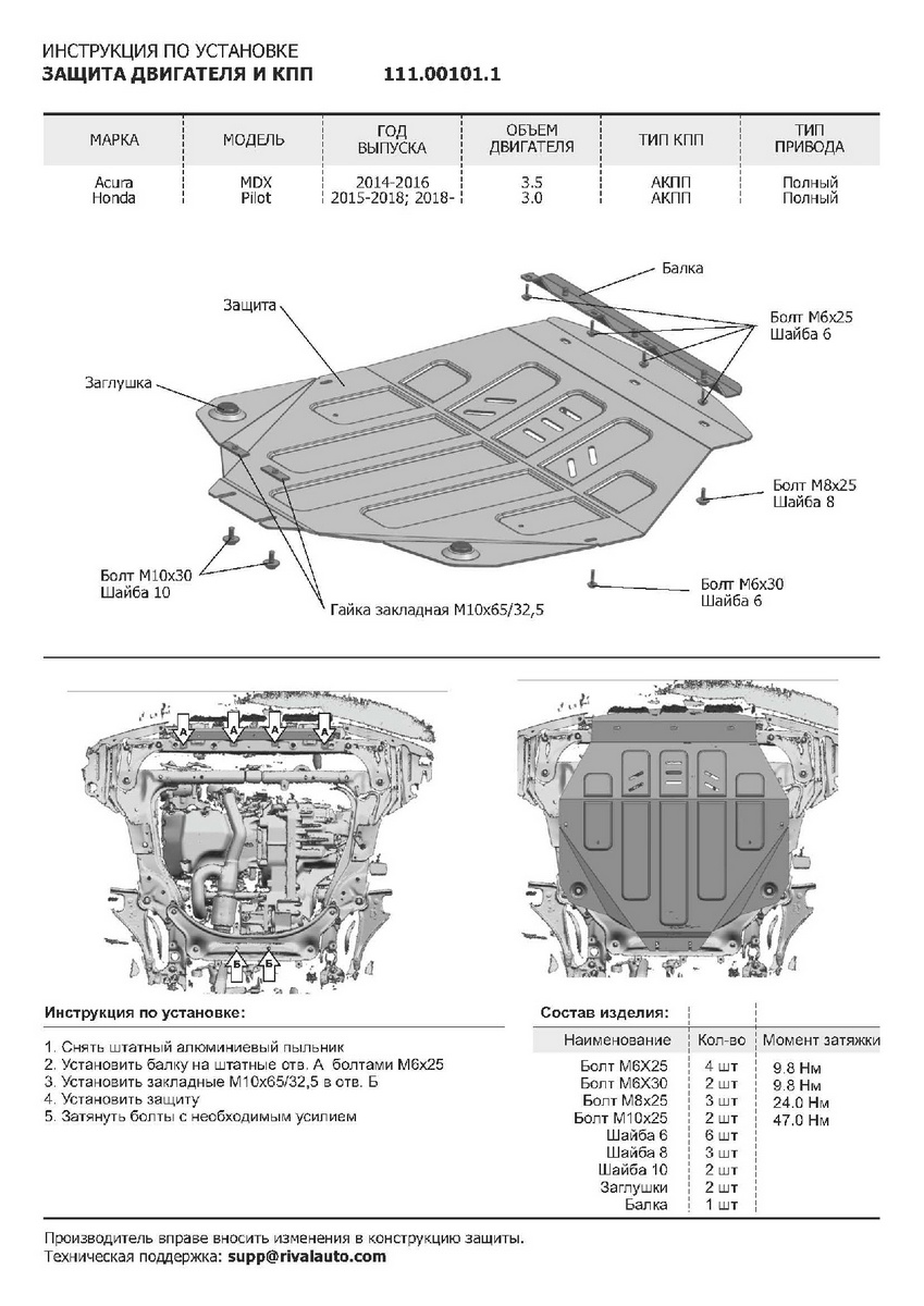 | Комплектация | защита - 1 шт., комплект крепежа, инструкция по установке, упаковка |